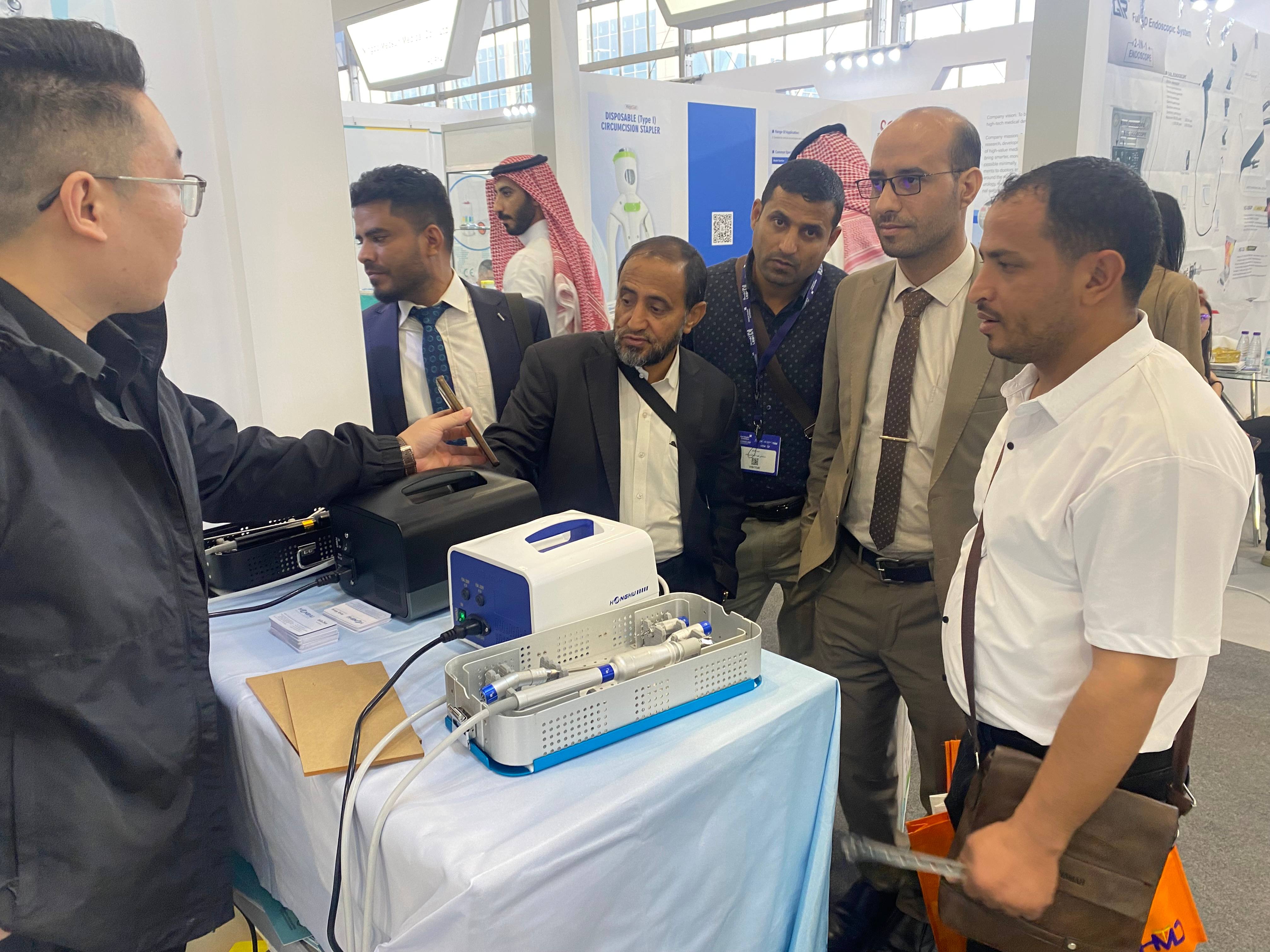 “黑旋风”“小旋风”系列神外动力产品与电凝镊、医用头架等产品组成的外科解决方案,也因操作便捷、适配性强的特点,吸引了沙特卫生部官员、医院采购决策者及区域分销商的密集咨询。